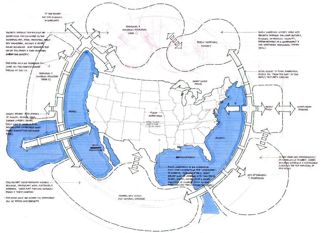 These attractions will educate Guests of the triumphs and struggles of the PAST, provide visions of and needs to create a bright FUTURE, and highlight ways we can maximize the PRESENT to meet those needs and create a sustainable American destiny.