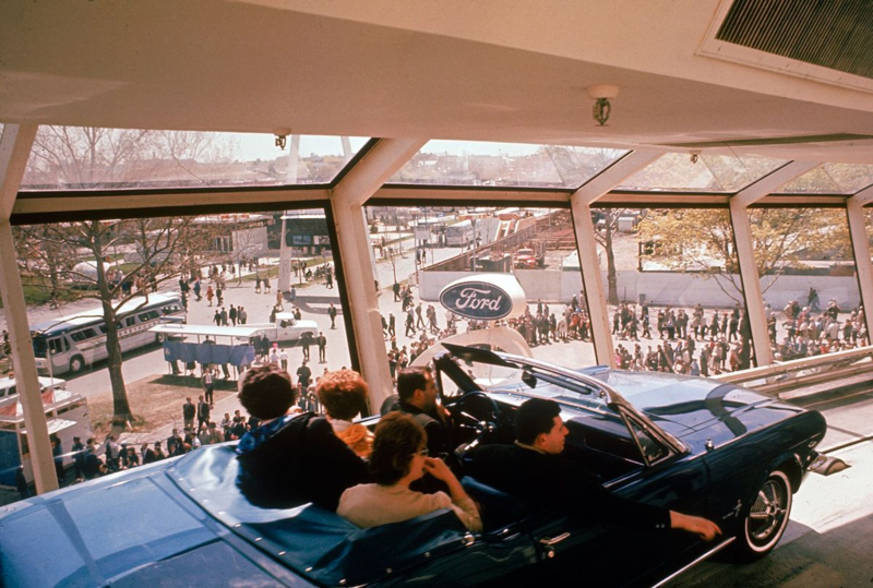Guests embark on the Ford Magic Skyway attraction at the 1964/65 New York World’s Fair.